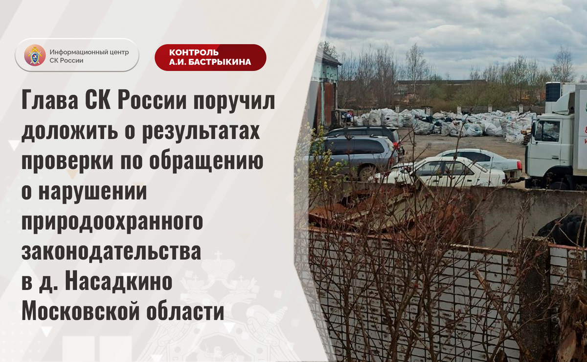 Глава СК России поручил доложить о результатах проверки по обращению о нарушении природоохранного законодательства в д. Насадкино Московской области