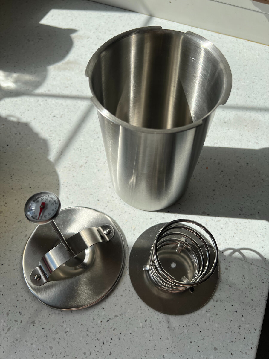 Насмотревшись давеча на лосей https://dzen.ru/b/ZiJqYdcHVTY5RHS6?share_to=link решил я что пора бы уже что-то и приготовить из копытных, тем более, что недавно приобрёл новый кухонный девайс: ветчинницу. Проштудировал по диагонали, как водится, интернет, взял в голове какую-то основу рецептуры и начал творить: По мясу взял фарш лося и окорок пятнистого оленя Окорок освободил от плёнок с жилами и меленько нарезал условными кубиками 2 на 2 см. Соединил с лосиным фаршем и перемешал. Головку чеснока на тёрке и туда же пару чайных ложек сладкой паприки, ложку смеси перцев и соли полторы. Больше по специям не изобретал ничего, часто простота в этом тонком деле букета ароматики и нюансов лучше всего раскрывает вкус мяса если мясо того стоит! А дичь- именно такой случай! И вот эту заготовку под плёнку и отдыхать в холодильник часов на 10. В сети были варианты от 5 часов до 5 дней поэтому особо не заморачивался- сколько само получилось с делами столько для пробы пера и хватит. Ну а ближе к ноч