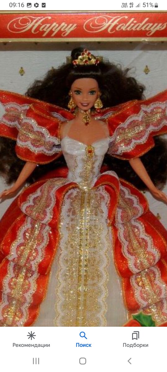 Смотрю, в ленте то и дело мелькают рассказы о счастливых удачных покупках на этой неделе) поделюсь своей) Мои истории начинаются примерно одинаково: сижу я как-то раз на авито...😁 И вижу у одной девушки разных куколок в объявлении , одна из них вроде маковка с челкой) а такой-то у меня и нет) начинаю смотреть подробнее фото, да, она, красавица, а рядом ... Барби холидей брюнетка. Без аутфита, но по хорошей цене и как удачно, такие разные куколки и сразу приедут вместе)) Тут сделаю отступление насчёт Барби Холидей) думаю, все коллекционеры знакомы с этой серией праздничной Барби с особенно красивыми макияжем, причёской, аксессуарами и нарядом) я тоже хотела себе такую, но никак не могла определиться, какую же выбрать... Такого, чтобы прямо в сердце кто запал, не случилось. Сначала поняла, что макияж у Барби хочу в зелёных тонах. Потом решила, что хочу не блондинку. Нравилась вот эта девочка Но не нравился наряд, эти насборенные ленты... Теперь угадайте, кто был вместе с маковкой) кон