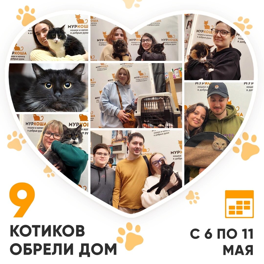 Друзья! Сегодня среда, и мы, как обычно, подводим итоги работы «Муркоши» за прошедшую неделю. Кто же стал счастливым выпускником Центра помощи кошкам «Муркоша» с 6 по 12 мая 2024 года? 😺 🥳 Итак, за прошедшую неделю домашними и любимыми стали 9 котиков! 1. Кот Каору, 2 года Чёрно-белый котик жил возле подъезда. К счастью, приехал к нам в приют, где и встретил любящую хозяйку! «Каору дома, осматривается, всё для него необычно:)))» 2. Кот Шаман, 1 год Красавец Шаман жил на улице, после – на домашней передержке. Затем котик приехал в «Муркошу». Здесь он встретил заботливую семью! 3. Кошка Сурьма, 2 года Пушистая кошечка Сурьма жила в подвале. А в нашем приюте девочка обрела свой дом, в котором ей будет очень уютно! 4. Кот Фомич, 5 лет Желтоглазый Фомич был найден на улице. Мы очень рады, что недавно он встретил любимую и любящую хозяйку! 5. Котёнок-девочка Серенейд, 10 месяцев Кошечка приехала к нам из стационара. А сегодня мы рады сообщить, что у Серенейд появилась замечательная