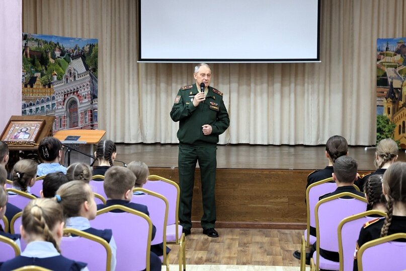 15 апреля в Сормовской православной гимназии имени святого апостола и евангелиста Иоанна Богослова состоялась встреча учащихся с начальником военного госпиталя Западного военного округа, полковником медицинской службы Олегом Ивановичем Тутаевым. Урок прошёл в рамках общероссийского проекта «Разговоры о важном», темой которого стала профессия военного врача. По сложившейся традиции понедельник для учащихся начался с утреннего молитвенного правила, торжественной линейки и совместного исполнения Гимна России. Чести выносить Флаг Российской Федерации были удостоены воспитанники гимназического кадетского клуба имени А.В. Суворова. С приветственным словом к присутствующим обратился директор православной гимназии протоиерей Евгений Худин, он же представил ребятам почётного гостя. Гость рассказал ребятам о специфике работы военного госпиталя, нелёгкой службе военных врачей, подчеркнув связь госпиталя с церковью. Олег Иванович также поделился историей своего выбора профессии. ‒ Мне было приятно