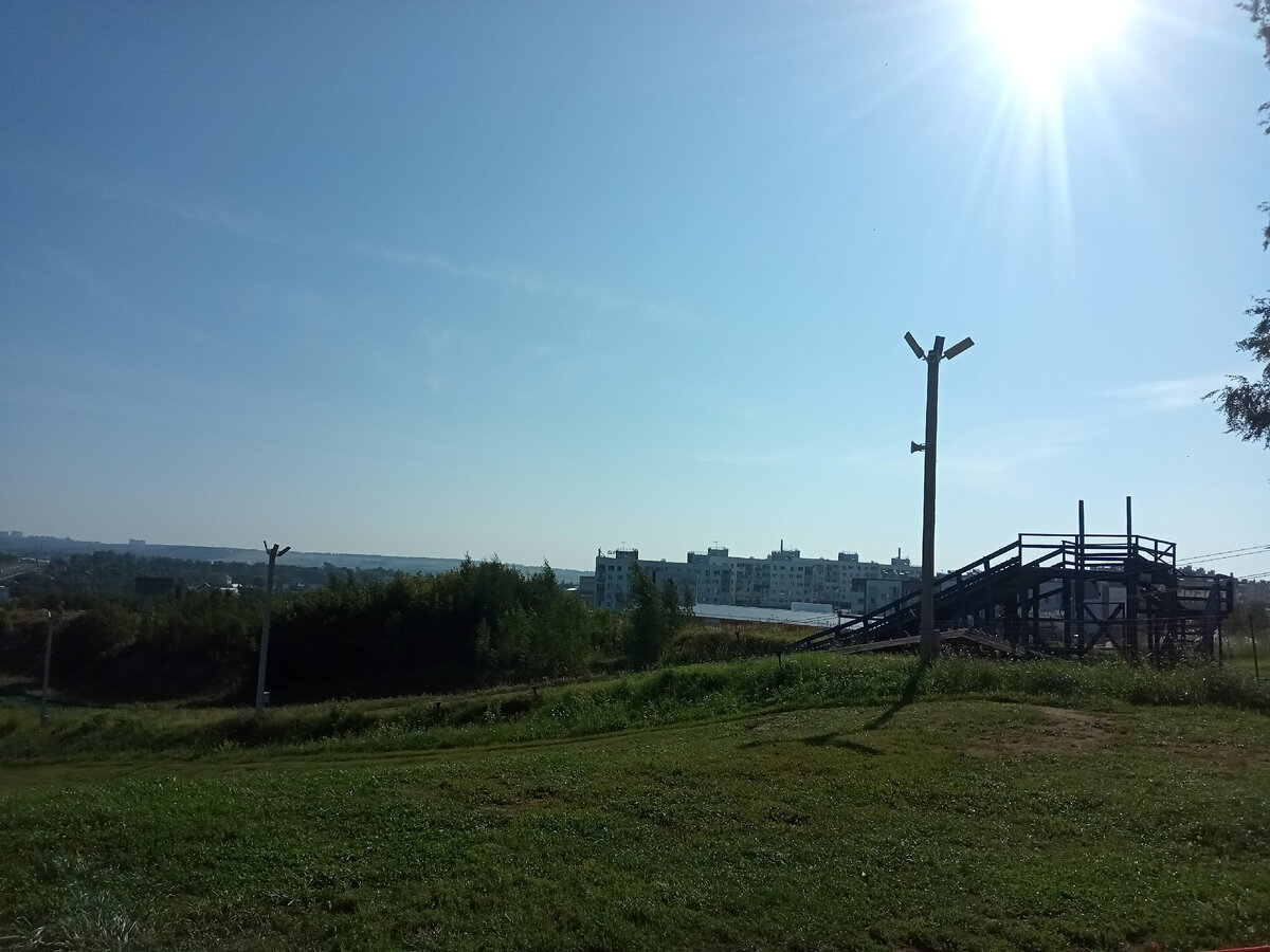Раннее утро после бурной ночи бывает совершенно разным. Иногда оно хмурое и неприветливое, в комплекте с ним обычно идет головная боль, чувство сожаления и "да никогда больше". А иногда - такое, как сегодня. В окошко с ясного голубого неба светило солнце, от вчерашнего вечера, проведенного в красивом городе в хорошей компании осталось приятное послевкусие, благодаря которому организм за недолгий остаток ночи успел набраться сил достаточно, чтобы теперь предвкушать новую дорогу. Но сначала - неторопливая прогулка по территории комплекса, знакомство с местным котом, вкусная еда на завтрак и утренние сборы. Наш постаревший на год друг тем временем навострил лыжи мотоцикл обратно домой. Так что, хоть стартуем мы и одновременно, но ему предстоит пройти что-то около 300 километров, у нас же впереди - полноценный ездовой день и 700 километров до Набережных Челнов. Впрочем, несмотря на столь немалое расстояние, которое нам предстоит пройти, перед стартом не можем не залипнуть на детскую команд