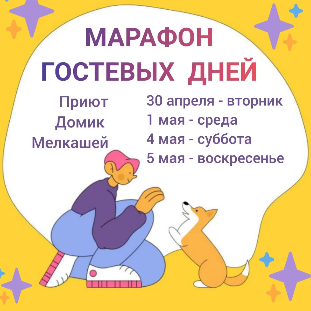 📌 ПРИГЛАШАЕМ В ГОСТИ Малыши, которые всю жизнь выживали вопреки, сейчас мечтают лишь об одном - услышать «Привет, моя радость, поехали скорее домой»💞 И чтобы как можно больше собачек смогли с гордостью назвать себя ДОМАШНИМИ приют Домик Мелкашей объявляет: ✨МАРАФОН ГОСТЕВЫХ ДНЕЙ ✨ 🍭Для посещения приюта напишите Анне свои ФИО, цель посещения и желаемый временной слот:
