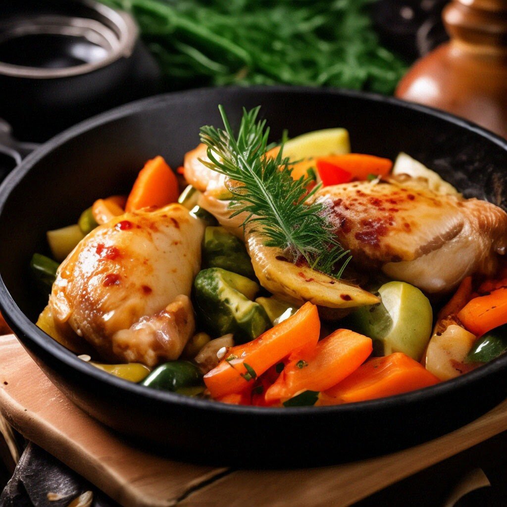 🍲 Экспресс-обед из одной сковороды: Курица с овощами 🍲 Приветствую всех ценителей вкусной и быстрой кулинарии! Сегодня я хочу поделиться с вами рецептом невероятно ароматной и сытной курицы с овощами, которую можно приготовить буквально за полчаса, не используя кучу посуды. Итак, давайте начнем! Ингредиенты: - Куриные грудки – 2 шт. (можно заменить бедрами или окорочками) - Сладкий перец – 1 шт. - Лук репчатый – 1 шт. - Морковь – 1 шт. - Чеснок – 2 зубчика - Томаты черри – 100 г - Цукини – 1/2 шт. - Оливковое масло – 2 ст. л. - Приправы: соль, перец, любимые травы (типа тимьяна, розмарина) - Свежая зелень для подачи Приготовление: 1. Нарежьте курицу на средние по размеру кусочки. Посолите и поперчите. 2. Разогрейте сковороду с оливковым маслом на среднем огне. Обжарьте курицу до золотистой корочки с обеих сторон, примерно по 3-4 минуты с каждой. Затем выложите курицу на тарелку. 3. В ту же сковороду добавьте нарезанный лук и морковь, обжаривайте до мягкости лука. 4. Затем добавьт