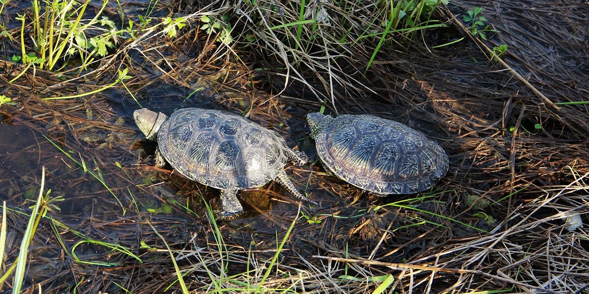 Воронежские волонтеры выпустили краснокнижных болотных черепах