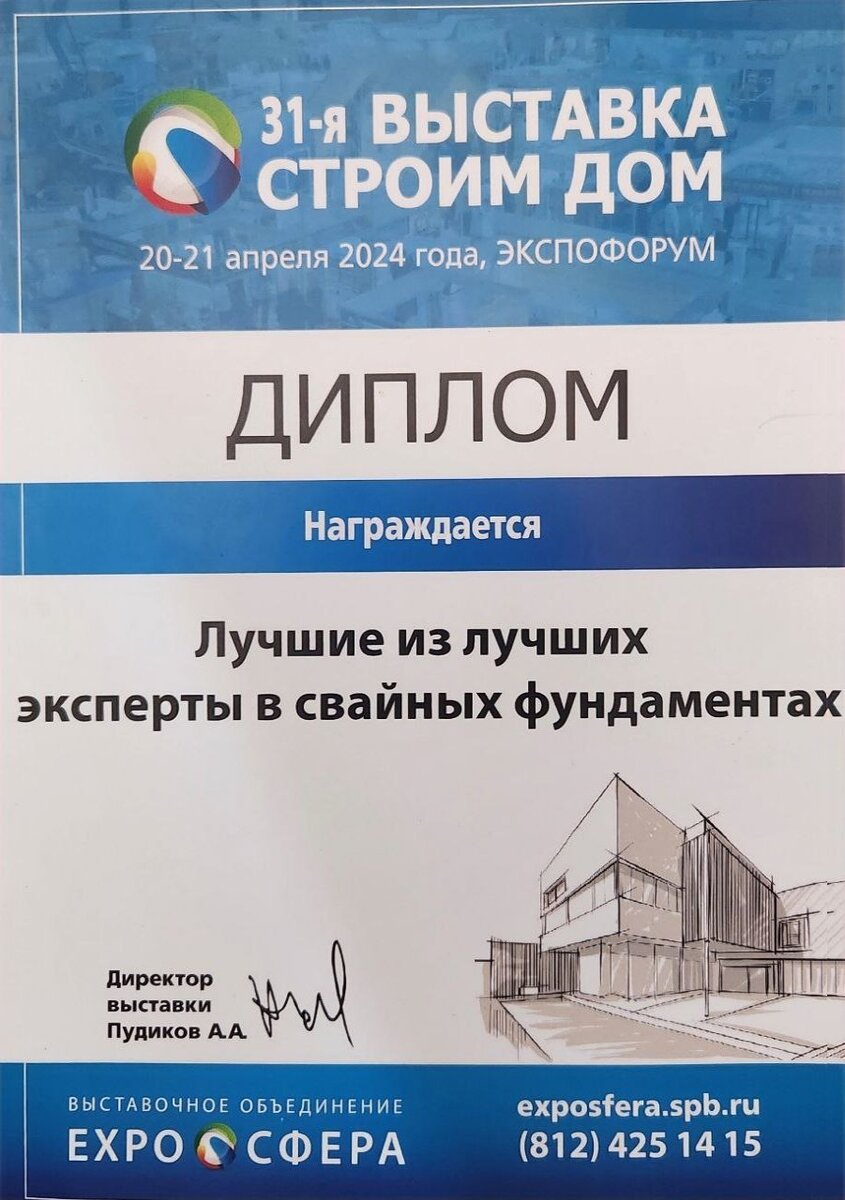 Санкт-Петербург стал пристанищем для ведущих специалистов в области строительства на 31 всероссийской выставке "Строим дом". В этом году, компания "Фундамент на жб сваях" была признана лучшей!
