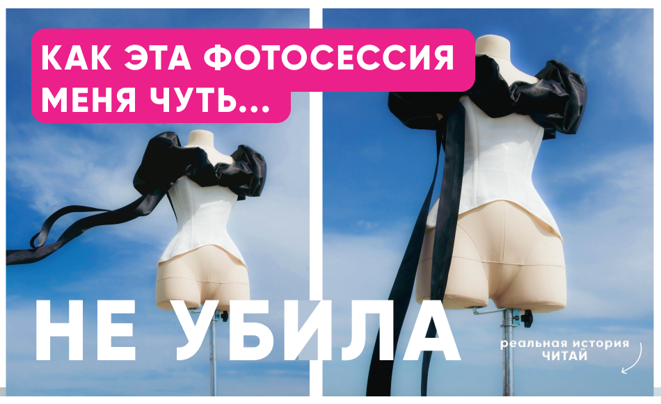 Еще бы чуть-чуть и я сорвалась вниз. И все ради красивых и уникальных фото. История про сумасбродную идею или о том, как сделать запоминающиеся кадры, не имея ничего, кроме товара и фантазии. В конце поделюсь советами, чтобы и вы смогли так. Но сначала расскажу о том, как на вершине горы оказались я с камерой и манекен в корсете. Как выше облаков оказалась не только Тина Кароль Мы уже работали с Машей Фрей, когда мне в голову пришла идея снять наши корсеты на фоне чистого неба. Просто и быстро, никакого дополнительного оборудования. Только высота и простор (и наши корсеты) Получились бы классные качественные кадры, которые сразу можно было бы отправлять в работу. Мы такое еще не снимали, новый опыт и уникальные фото в одном лице. Осталось дело за малым - добраться до неба. Камера у меня была, корсет и манекен тоже. Еще и цветочный, с которым мы уже работали, бесплатно отдал букет белых лилий. Они отлично вписывались в концепцию съемки, поэтому стали настоящим подарком. Весь набор собра