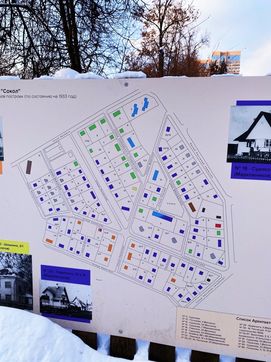 Всего в нескольких сотнях метров от Ленинградского шоссе оказываешься в посёлке внутри города. Он считается памятником градостроительства первых лет советской власти, а так же является олицетворением непростой истории. Остающийся незаметным в окружении многоэтажек, но давший название целому району и станции метро - чудом уцелевший город-сад Сокол, где простые домики с небольшими участками являются одними из самых дорогих в стране.