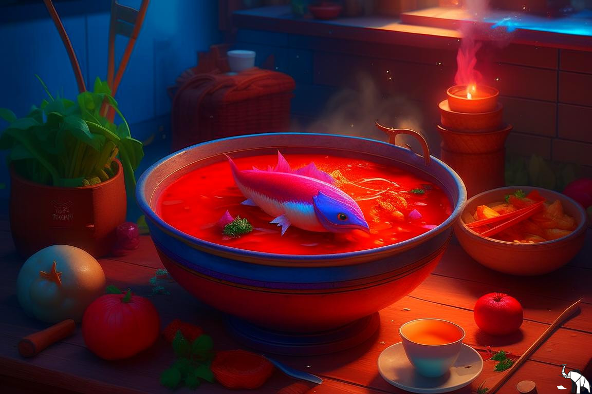 Борщ постепенно готовился и пах очень вкусно, даже вкуснее, чем обычный Ленин борщ по рецепту ее мамы и бабушки. Это было немного даже обидно. Доварив борщ до конца, Лена чуть на автомате не налила себе тарелку. Но вспомнила про любовь и солнце красное и вылила все обратно.