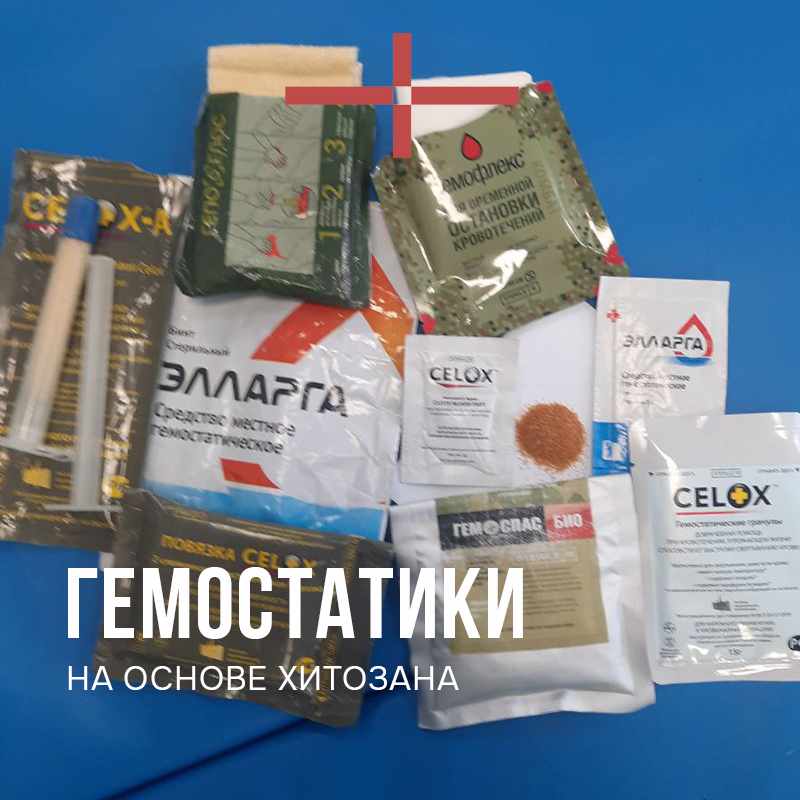Местные гемостатические препараты (лат.: haema – «кровь», stasis – «останавливать») уже давно используются в хирургии различных областей, чтобы дополнить хирургические возможности остановки кровотечения. Особое распространение гемостатические средства получили при развитии тактической медицины (военная первая помощь) в конце 1990-х – начале 2000-х годов. Эффект местных кровоостанавливающих средств основан на принудительном сворачивании крови раньше положенного физиологического срока. Первые генерации этих средств были достаточно агрессивными и вызывали даже ожоги внутри ран, что сначала оттолкнуло от них общественность. Дальнейшее развитие направления позволило сделать эти препараты безопасными и минимизировать количество побочных эффектов. Самыми распространёнными сейчас являются кровоостанавливающие препараты на основе хитозана. Хитозан – натуральный полимер, изготавливаемый из панцирей морских ракообразных. Смешиваясь с кровью, он образует гелеобразный сгусток, затыкающий пов