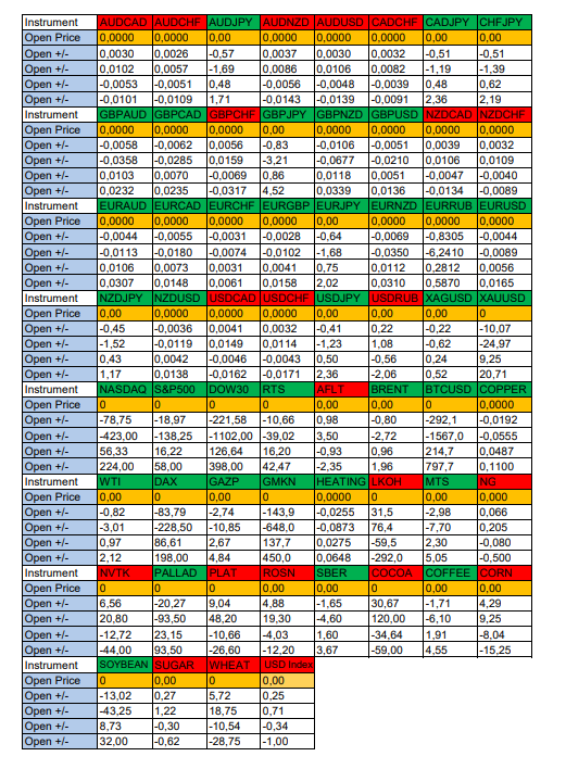 Весь перечень анализируемых активов указан ниже в общем количестве 60 инструментов. Здесь Вы найдете активы рынка Форекс, популярные активы Московской биржи, популярные активы Чикагской биржи СМЕ и мажор криптовалютного сегмента - Биткоин.