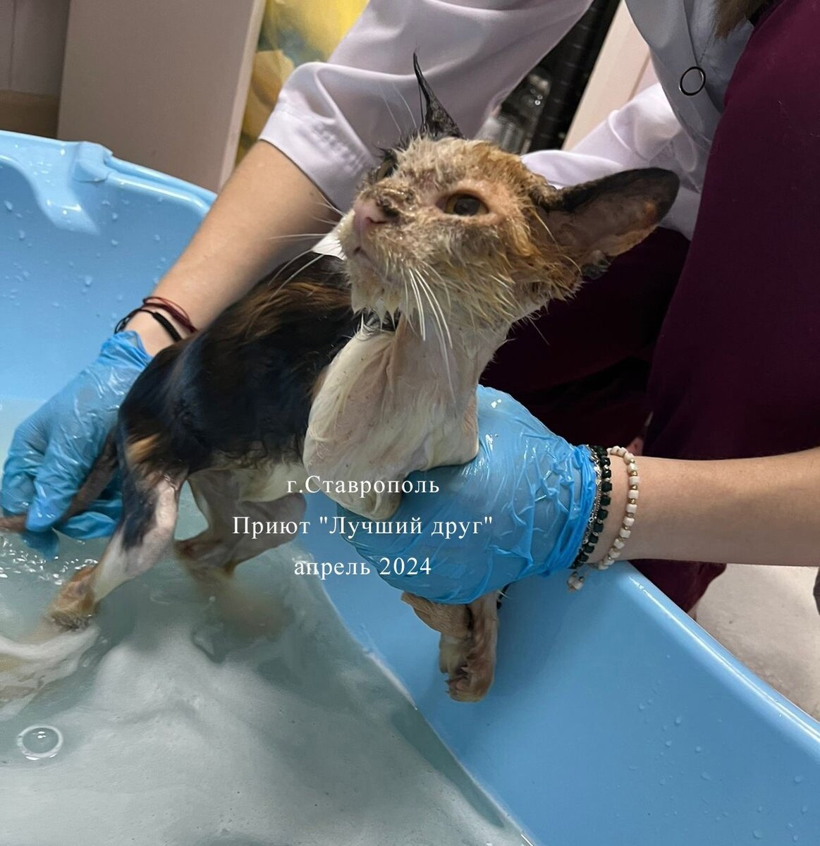 Сегодня сдаем общий анализ крови, смотрим динамику и, если все хорошо, Даяна едет долечиваться в приют. Трехцветную Даяну нашли в гаражах на промзоне, на лапах едва стоит, шатается, глаза не открываются, вся покрыт коростой. Диагноз нотоэдроз (чесотка), алопеция. Нотоэдроз на начальных стадиях лечится не сложно, но у Даяны болезнь уже в запущенном виде, сильное поражение кожных покровов, интоксикация и обезвоживание. Несколько дней на капельницах и есть положительная динамика. Активная красавица, ни минуты не сидит на месте. Надеемся, что скоро Даяна поправится и больше никогда-никогда не будут от нее шарахаться люди, брезговать и отшвыривать от себя ногами.