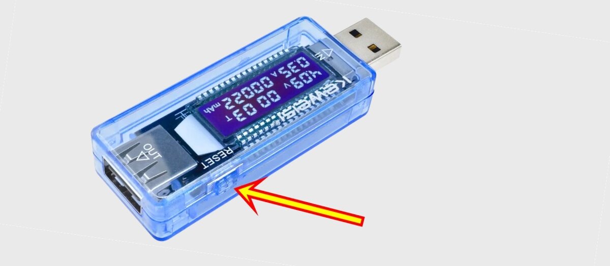 Всех приветствую, друзья! Сегодня смастерим кнопочку, маленькую для китайского USB-тестера. Чтобы было понятно, что за тестер – фото внизу, стрелка показывает на потерянную кнопку.