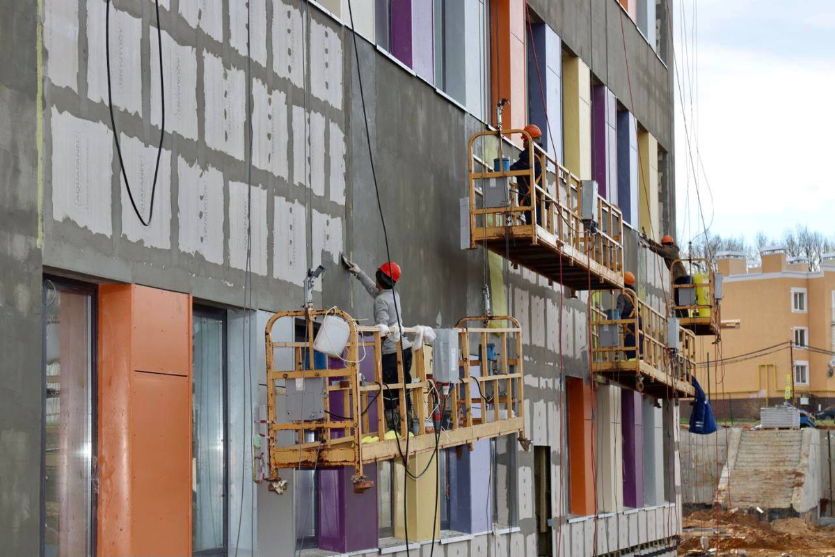 Работы на объекте выполнены на 75%. Практически завершены фасадные работы, возведение перехода между корпусами. Продолжаются внутренние работы, в скором времени подрядная организация приступит к благоустройству прилегающей территории.