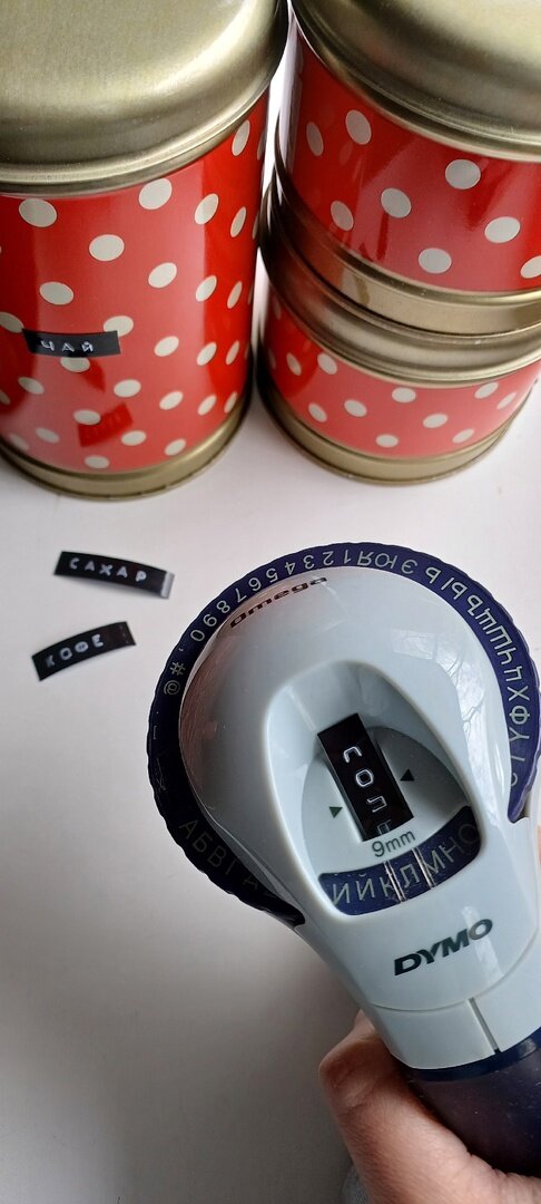 Очень удобный девайс. Можно набрать любое слово и тут же его распечатать. Покупала его пару лет назад и успешно пользуюсь когда подписываю баночки для хранения. И вот решила подписать свои новые ретро-баночки, которые мне недавно подарила подруга.