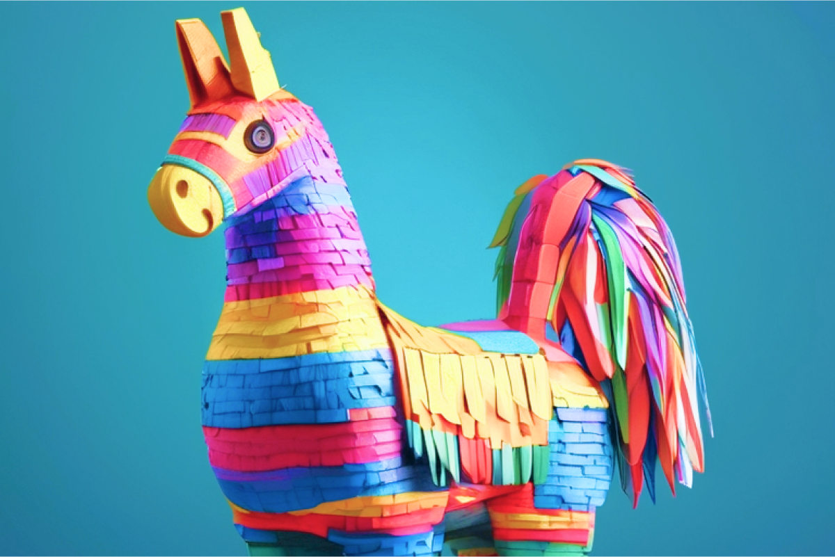 Ее подвешивают с помощью крепкой веревки так, чтобы каждый ребенок мог легко достать ее палкой. Приглашенным завязывают глаза и просят бить максимально сильно по сюрпризу. Цель: разбить, чтобы из пиньяты посыпались во все стороны угощения.