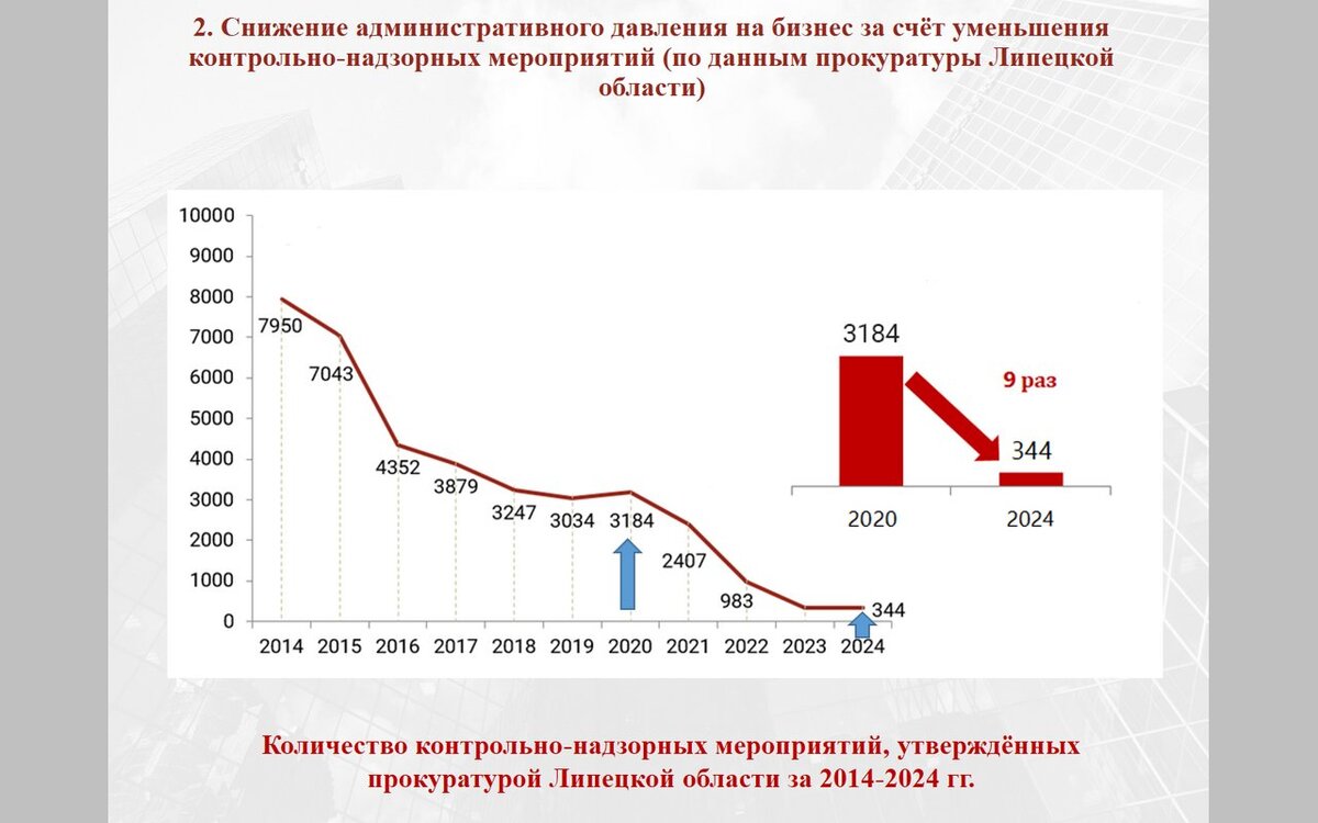 В 2023 году к Александру Бабанову поступило около 350 жалоб. Как отметил омбудсмен, их количество сохраняется по протяжении нескольких лет. Это связано со снижением административного давления на бизнес. За последние 4 года количество контрольно-надзорных мероприятий по деятельности предпринимателей снизилось в 10 раз и достигло трехсот.