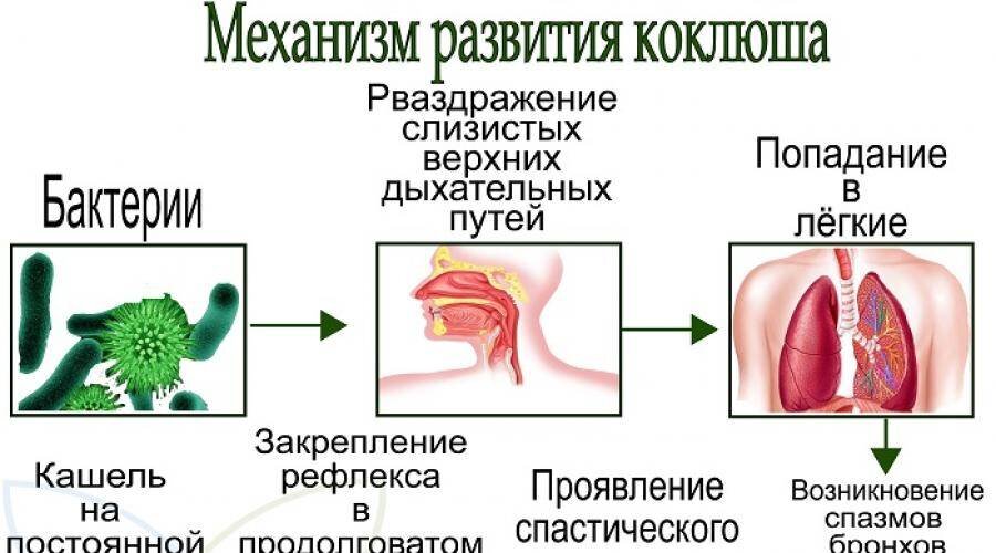 Коклюш передается с помощью аэрозольного механизма преимущественно воздушно-капельным путем. Обильное выделение возбудителя происходит при кашле и чихании. Ввиду своей специфики, аэрозоль с возбудителем распространяется на незначительное расстояние (не более 2 метров), поэтому заражение возможно только в случае тесного контакта с больным. Поскольку во внешней среде возбудитель не сохраняется длительно, контактный путь передачи не реализуется.