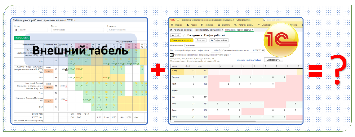 Внешний табель учета рабочего времени для 1С?