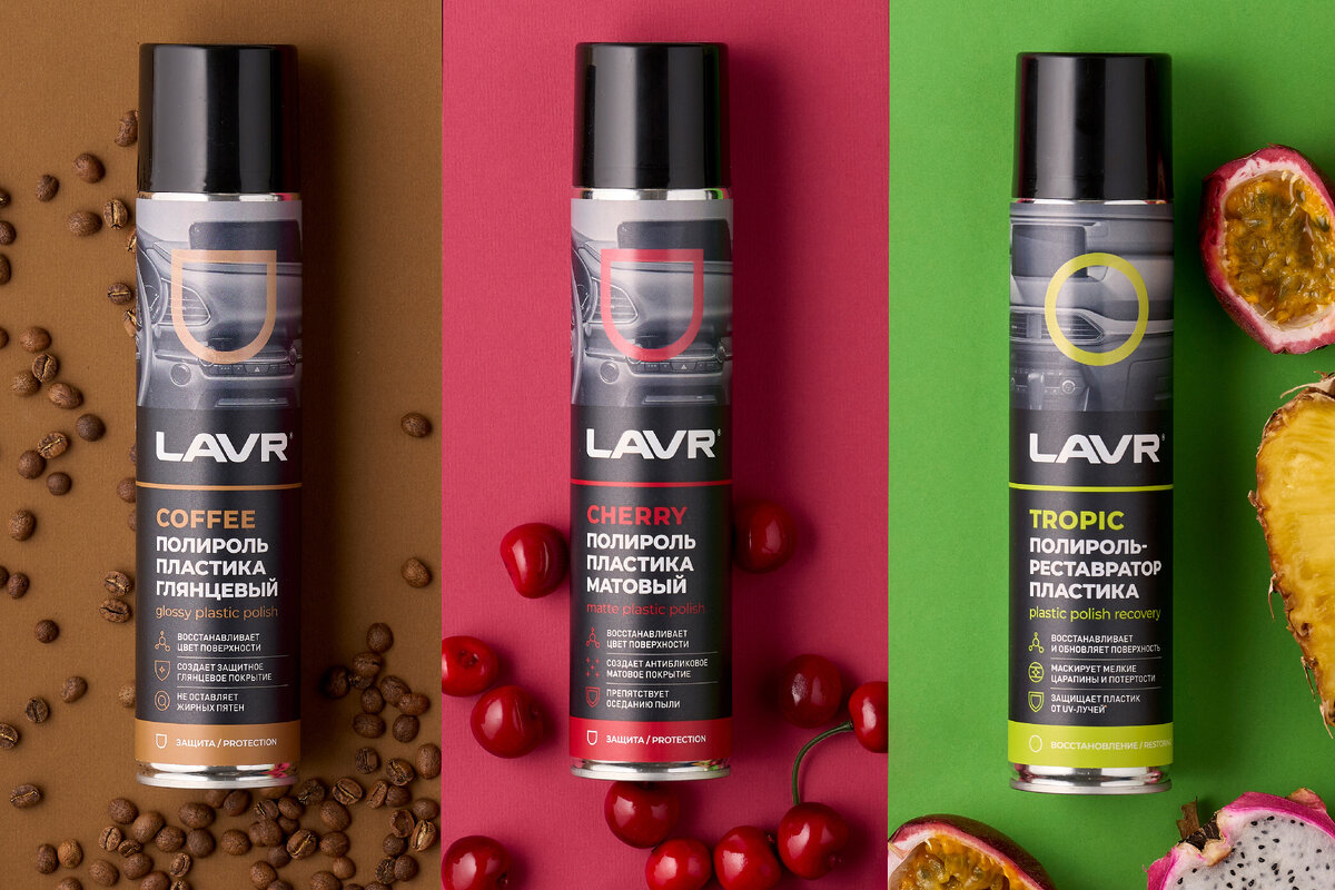 Пластик в салоне всегда на виду. Чистота, отсутствие пыли, царапин и потертостей сразу создают приятное впечатление об автомобиле и его владельце. Но это довольно чувствительный материал: он выгорает, тускнеет, царапается и вытирается. Есть и хорошая новость – небольшие повреждения можно устранить за несколько минут, а с новинками LAVR это сделать еще проще и приятнее. Так сложилось, что к автокосметике владельцы техники предъявляют особые требования: она должна не только решать проблемы по основному назначению, но и давать бонусы, например, приятный аромат. В какой-то момент дошло до того, что многие стали выбирать полироли и очистители пластика по запаху, а не по составу, бренду или рекомендациям. Сейчас такие крайности изжили себя, но на запах полиролей автовладельцы внимание все-таки обращают.