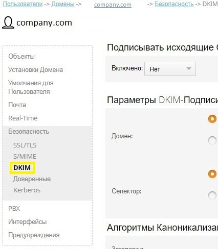 selector._domainkey.company.com TXT "v=DKIM1; p=<открытый ключ>"