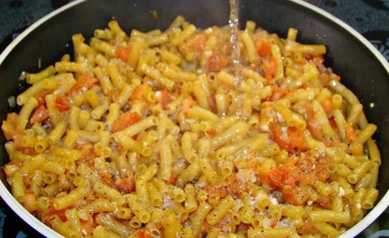 Рецепт из юности) Быстрый, вкусный и сытный. И когда нужно на скорую руку накормить несколько человек) Ингридиенты: Макароны -250 грамм, Лук-1 шутка, Морковь-1 штука, Подсолнечное масло -2 ст. л., Сливочное масло 20 грамм, Вода-400 мл., Чеснок-2-3 зубчика, Соль -1/2 ч. л. Перец молотый. Приготовление Берëм среднюю луковицу и крошим еë кубиками. Разогреваем сковороду вместе с растительным и сливочным маслом. Высыпаем лук и жарим на небольшом огне до золотистого-прозрачного состояния. Берëм среднюю морковь, трëм еë на мелкой или средней тëрке. И по мере готовности лука также высыпаем на сковороду морковь. Всë перемешиваем и обжариваем ещë 3-4 минуты. Затем выдавливаем чеснодавилкой или натираем на тëрке 2-3 зубчика чеснока и тоже добавляем к моркови и луку. Сразу же добавляем 250 грамм сухих макарон(неварëных) и всë перемешиваем Затем добавляем воду 400 мл(можно горячей),половину чайной ложки соли , снова всë перемешиваем и накрываем крышкой. Далее готовим 7-8 минут.