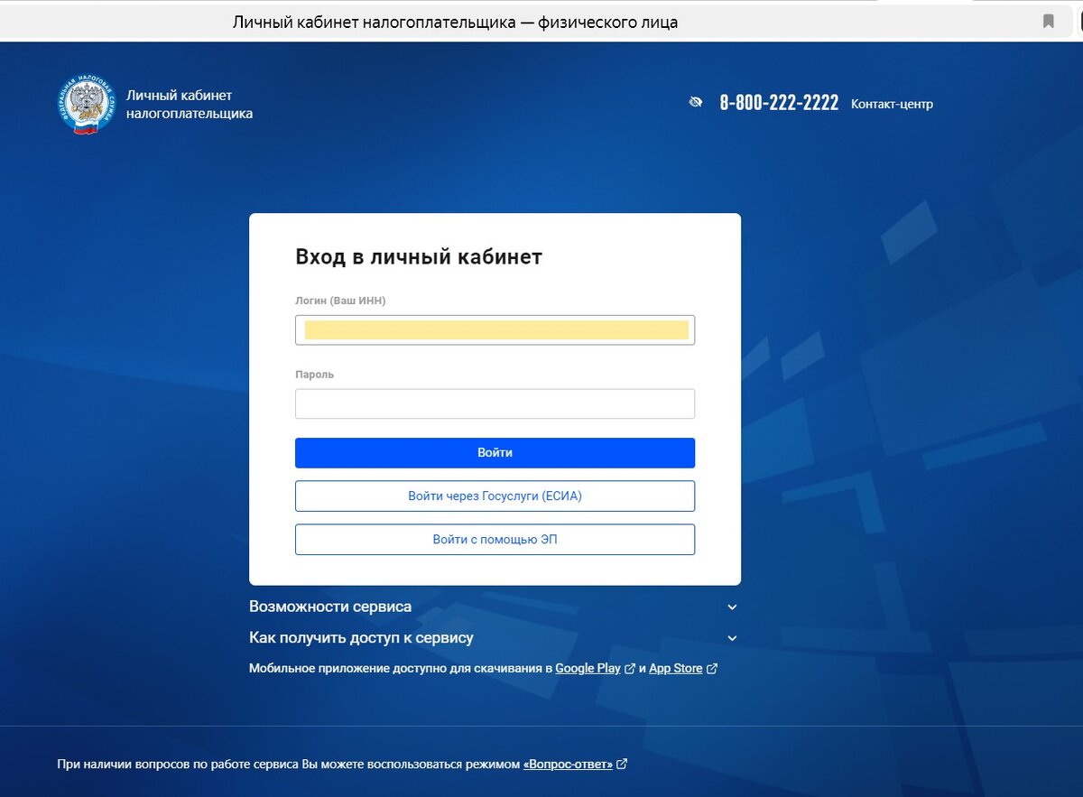Открываем ЛИЧНЫЙ КАБИНЕТ НАЛОГОПЛАТЕЛЬЩИКА, войти можно по Логину и Паролю, я обычно захожу через ГосУслуги.
