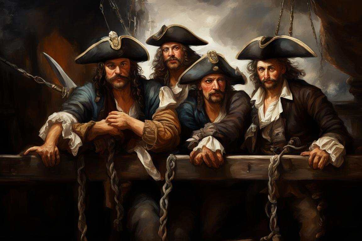 Пираты застыли, смотря друг на друга, Пару секунд не скрывая испуга, Но осознав, что кто-то снаружи Возможно их разговоры подслушал Мигом помчались к большому окну Пытаясь что-то увидеть сквозь тьму, Но всё что увидели, лишь силуэт Который хромая бежал вдалеке.