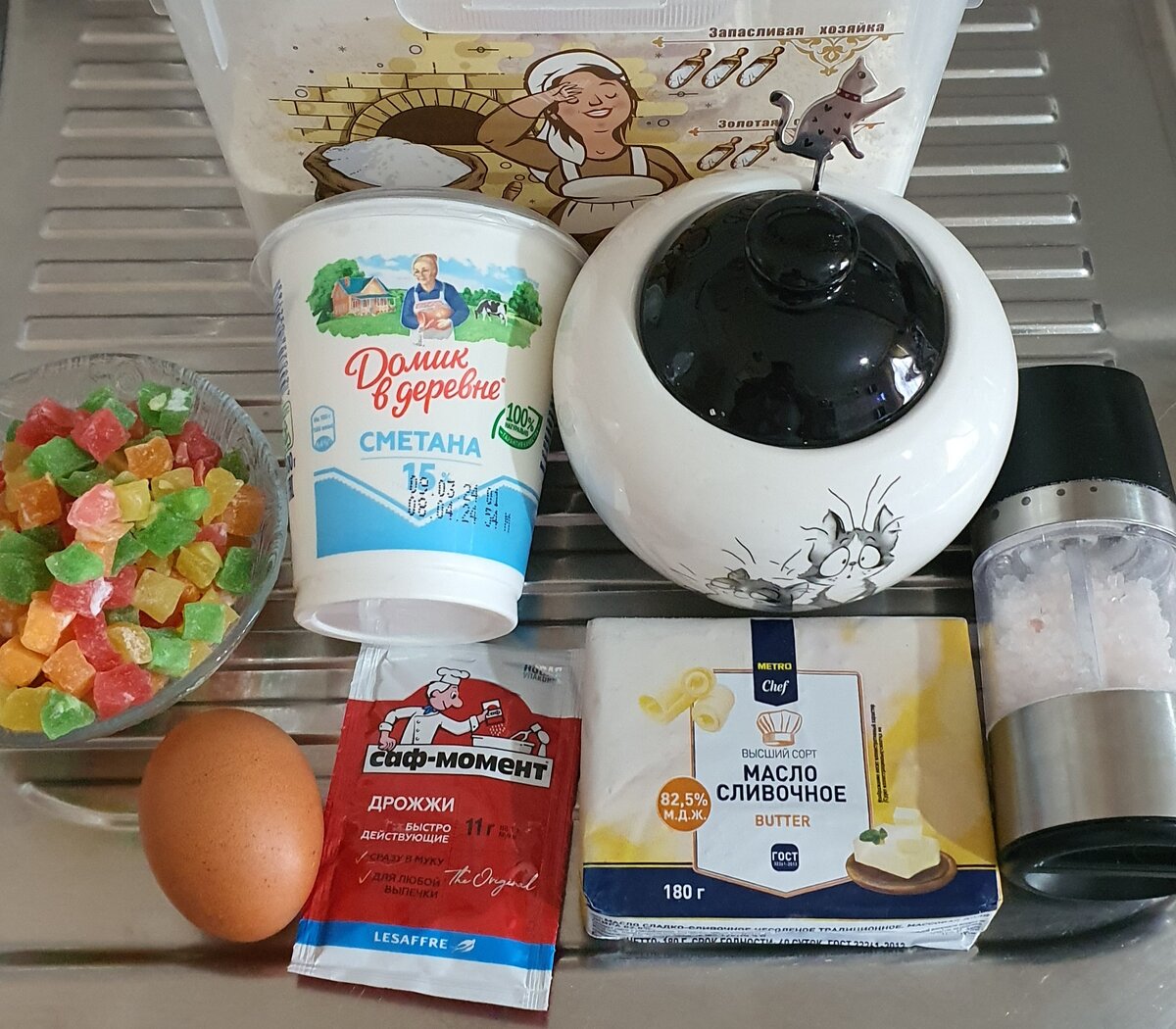 В этом куличе все прекрасно! Невероятная легкость в приготовлении и гармоничный сливочный вкус. А если еще добавить то, что готовиться он из минимума самых простых ингредиентов - ценность рецепта возрастет многократно! Ингредиенты: - мука 500-600 грамм - сметана 15 % 300 грамм - сахар 120 грамм - масло сливочное 100 грамм - яйцо куриное 1 штука - соль 0.5 чайной ложи - дрожжи сухие 12 грамм - изюм или цукаты около 100 грамм Сливочное масло растопить до мягкого состояния любым удобным вам способом. В миске соединить сметану, яйцо, сливочное масло, дрожжи, сахар и соль. Перемешать до однородной консистенции. Добавить муку. Замесить мягкое тесто слегка липнущие к рукам. Накрыть тесто полотенцем, пищевой пленкой, силиконовой крышкой или пакетом. Оставить в теплом месте без сквозняков на 1-1,5 часа. Если у вас цукаты достаточно крупные, измельчаем их любым удобным вам способом. В увеличившиеся в объеме тесто добавить цукаты. Тщательно вымесить. Оставить еще на 30 минут в т