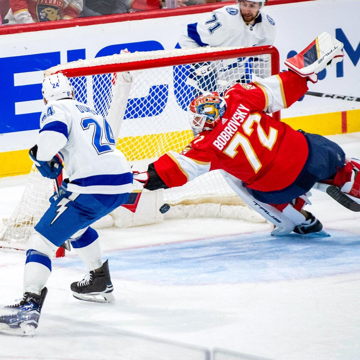 Общаясь с журналистами после второй игры с «Тампой», Сергей Бобровский сказал, что пока еще не видел видеоповтор своего главного спасения. На просьбу прокомментировать эпизод в деталях вратарь «Флориды» ответил, что может их и не вспомнить. Это нормально, ведь любой, кто присутствовал на домашней площадке «Пантерз» во вторник, никогда не забудет этот момент. Речь идет о невероятном спасении Бобровского, случившемся за 5 минут и 57 секунд до конца второго периода: при ничейном результате на табло российский голкипер «Флориды» совершил сэйв, глядя на который, трудно поверить своим глазам. «Я видел этот момент, находясь на лавке. Я был в шоке. Это что-то невероятное», – сказал защитник «Пантерз» Аарон Экблад. А вот наставник «Флориды» Пол Морис не сумел рассмотреть момент по-настоящему. По его словам, с его места была не лучшая видимость, плюс к тому в том эпизоде он был разочарован действиями команды, которые привели к голевому шансу у «Лайтнинг». «Я грубо высказался по поводу этого моме