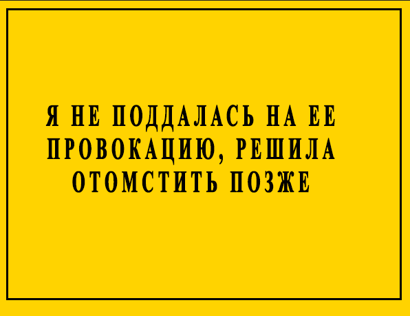 Но я не поддалась на ее провокацию, решила отомстить позже, ведь «месть – это блюдо, которое подают холодным». Вот и я решила выждать и нанести удар в более подходящий момент.