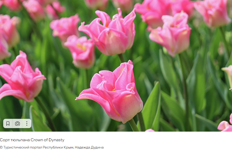 В Никитском ботаническом саду завершил своё шествие 17-й парад тюльпанов. На выставке было представлено более 150 сортов тюльпанов, растущих прямо на клумбах. По традиции выбирали победителя, тюльпан-генерал. Каждый желающий, посетивший это потрясающее зрелище мог поставить оценку конкурсантам. После завершения выставки провели голосование за генерала. В 2024 году победителем стал новый сорт, созданный в Нидерландах в 2016 году. «Сорт Crown of Dynasty – новинка выставки с розовыми лепестками. Показал себя как рано зацветающий и продолжительно цветущий сорт – цвёл почти месяц, с 15 марта по 12 апреля, и открылся первым среди короновидных тюльпанов. Короновидные тюльпаны – малочисленный садовый класс. Они отличаются строением цветка – он похож на корону за счёт изгиба лепестков, который напоминает носик чайника. Тюльпаны этого сорта очень напоминают розы. Окраска необычная, интересная. Рассматривая тюльпан можно увидеть розовый, золотистый, зелёный цвета. Цвета гармонично переходят один