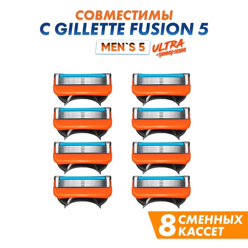 Кассеты сменные Men's Max 5 для бритв совместимы с Gillette Fusion5 8 шт, 5 лезвий