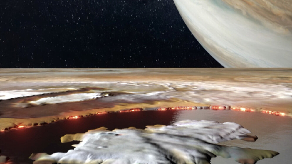 В 2011 году космический аппарат «Юнона» был отправлен с миссией по изучению планеты Юпитер. За последние несколько лет зонд передал поистине потрясающие изображения и ценные данные о крупнейшей планете Солнечной системы. Пролетая поблизости спутников Юпитера, «Юнона» также внимательно изучил самые крупные из них. Последним достижением миссии стали детальные снимки вулканического спутника Ио, на которых изображены лавовые озера, гладкие как стекло. Технически все изображения Ио, которые вы видели в интернете, не являются реальными фотографиями поверхности спутника, но они основаны на данных, полученных зондом во время недавних пролетов мимо Ио. Эти художественные изображения лавовых озер спутника были созданы на основе данных, которые «Юнона» получил во время недавних пролетов на низкой высоте в декабре 2023 года и феврале 2024 года. Во время этих пролетов зонд приблизился к поверхности на рекордно близкое расстояние - 930 миль (1500 километров). На изображении выше изображено лавовое о
