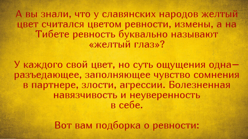 - Совсем другое дело – ревность, которая является намного более сложной и опасной установкой, так как ни в каких ситуациях не может приносить пользу личности. Более того, ревность – это результат сильного и глубоко чувства неполноценности. Как правило, ревнивый человек боится не удержать своего партнера, и в тот самый момент, когда он хочет управлять им и влиять на него, различными проявлениями ревности он только выдает свою слабость (Альфред Адлер)