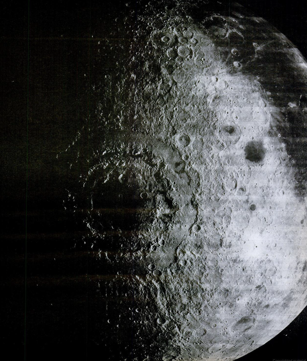 Колоссальный бычий глаз на Луне, Маре Ориентале (Восточное море), похож на узор, созданный камешком, упавшим в лужу. Ученые считают, что он образовался в результате падения гигантского метеорита, который создал концентрические кольца горных хребтов в сотни миль в поперечнике. Главная цель запланированного на эту неделю полета "Аполлона-11" достаточно экстраординарна - высадить двух человек на Луну и благополучно вернуть их на Землю. Но у полета есть и научная миссия, которая может значительно расширить знания человека о Луне, Солнце и даже его собственной планете. За последние пять лет с помощью беспилотных космических аппаратов человек уже узнал о Луне больше, чем за 350 лет, прошедших с момента изобретения телескопа. Лунные орбитальные аппараты, например, обнаружили новые интригующие особенности и сфотографировали новые виды старых лунных пейзажей - например, впечатляющее Mare Orientale, или Восточное море, которое находится на самом краю видимого диска Луны и никогда не было видно непосредственно сверху.