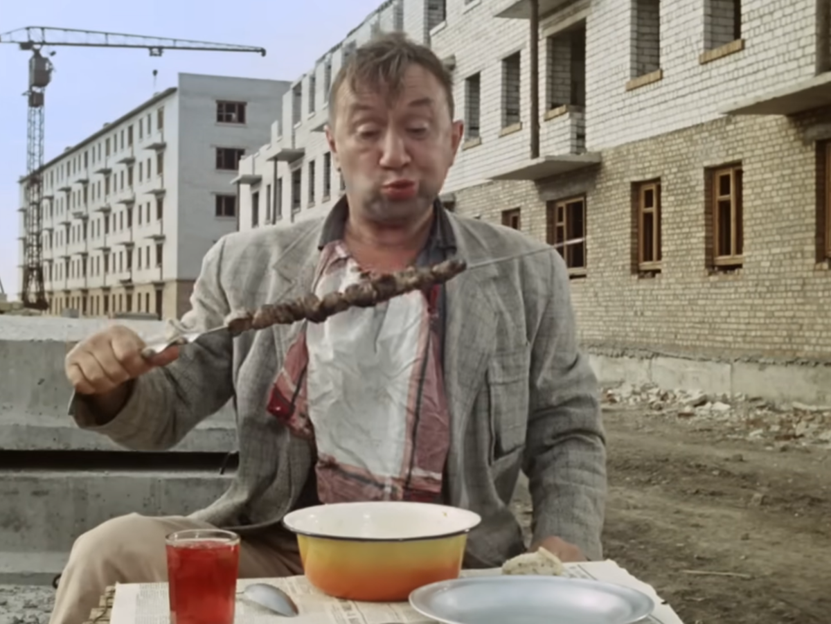 У всех нас майские праздники ассоциируются с шашлыками! Но Вы же знаете, что для приготовления шашлыка нужна только... хорошая компания, а время, место и даже рецепт не так уж важны? Если компания имеется - отлично! Сейчас расскажем, во что можно превратить традиционные майские шашлыки! Вы спросите: "Зачем что-то придумывать? Целый год шашлык не ели, он и сам себе праздник будет!" А мы ответим: "Верно! Но выходных дней будет много, так что приготовить шашлык можно не один раз!" И наверняка хотя бы один из этих разов Вы захотите разделить с компанией своих друзей и близких! Так вот для такого случая мы предлагаем Вам идею, как вокруг шашлыков "построить" целый кинопраздник - конечно же, по мотивам фильма "Операция Ы". Почему? А помните как тунеядец Федя аппетитно уплетал свою порцию шашлыка, перевоспитываясь на стройке? Вот давайте повторим! Кстати, шашлык же можно приготовить не только на мангале - но и вполне себе в духовке или электрогриле на деревянных шпажках! Так что гостей можн