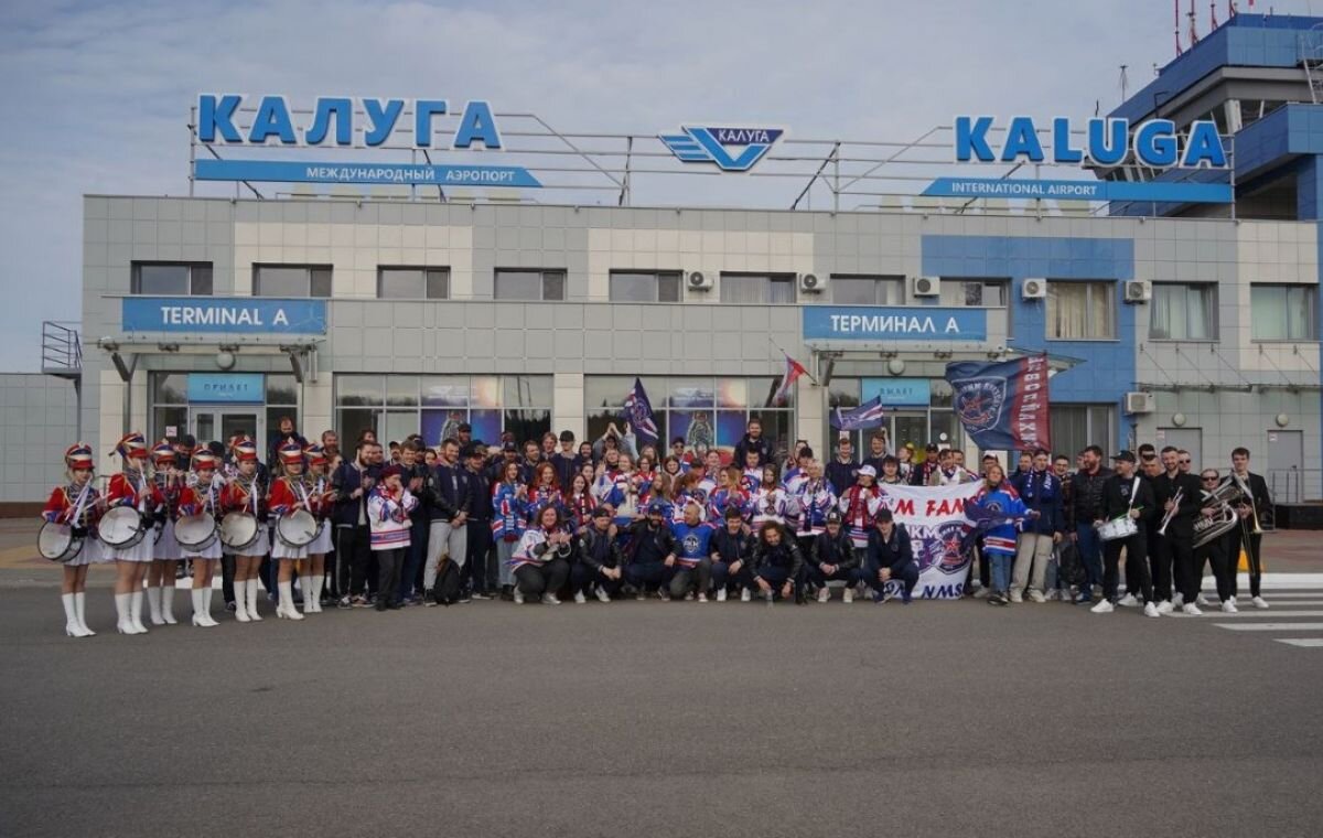 Болельщики тульского АКМ встретили команду в калужском аэропорту после финальных матчей сезона