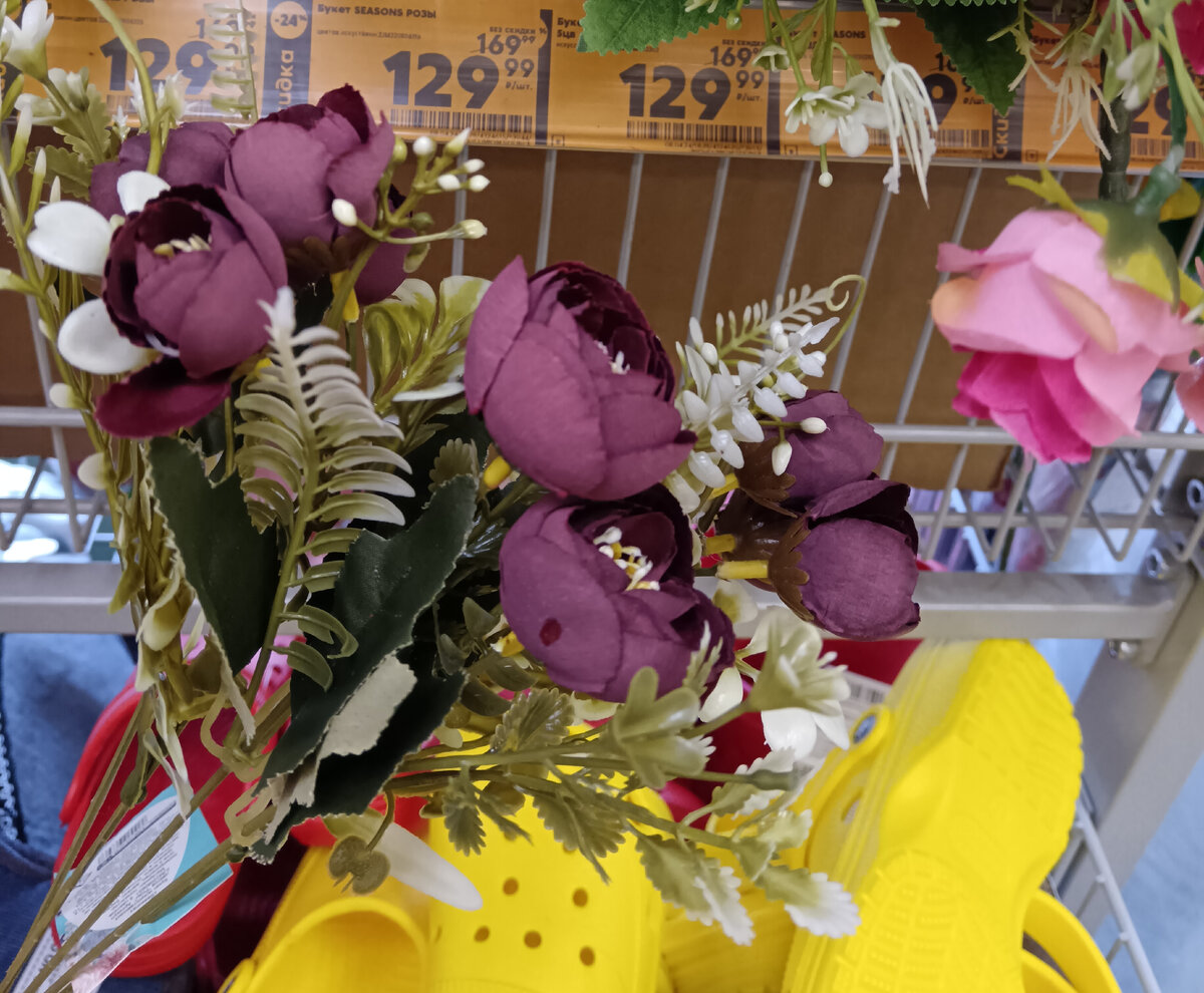 Но вообще поездка наша началась не с того. Сначала мы объехали пункты выдачи заказов. В одном забрали, наконец-то, килограмм изюма. Во втором - мне двое домашних штанов к новому сезону (эти траты мимо нашего эконом марафона пойдут, но отдала за них 700р). По дороге зашли в Пятерочку за яйцами, посмотрели, развернулись и пошли обратно, разве что около цветочков притормозила. Букетики небольшие, на фотографии даже солиднее выглядит, но все равно довольно неплохие: