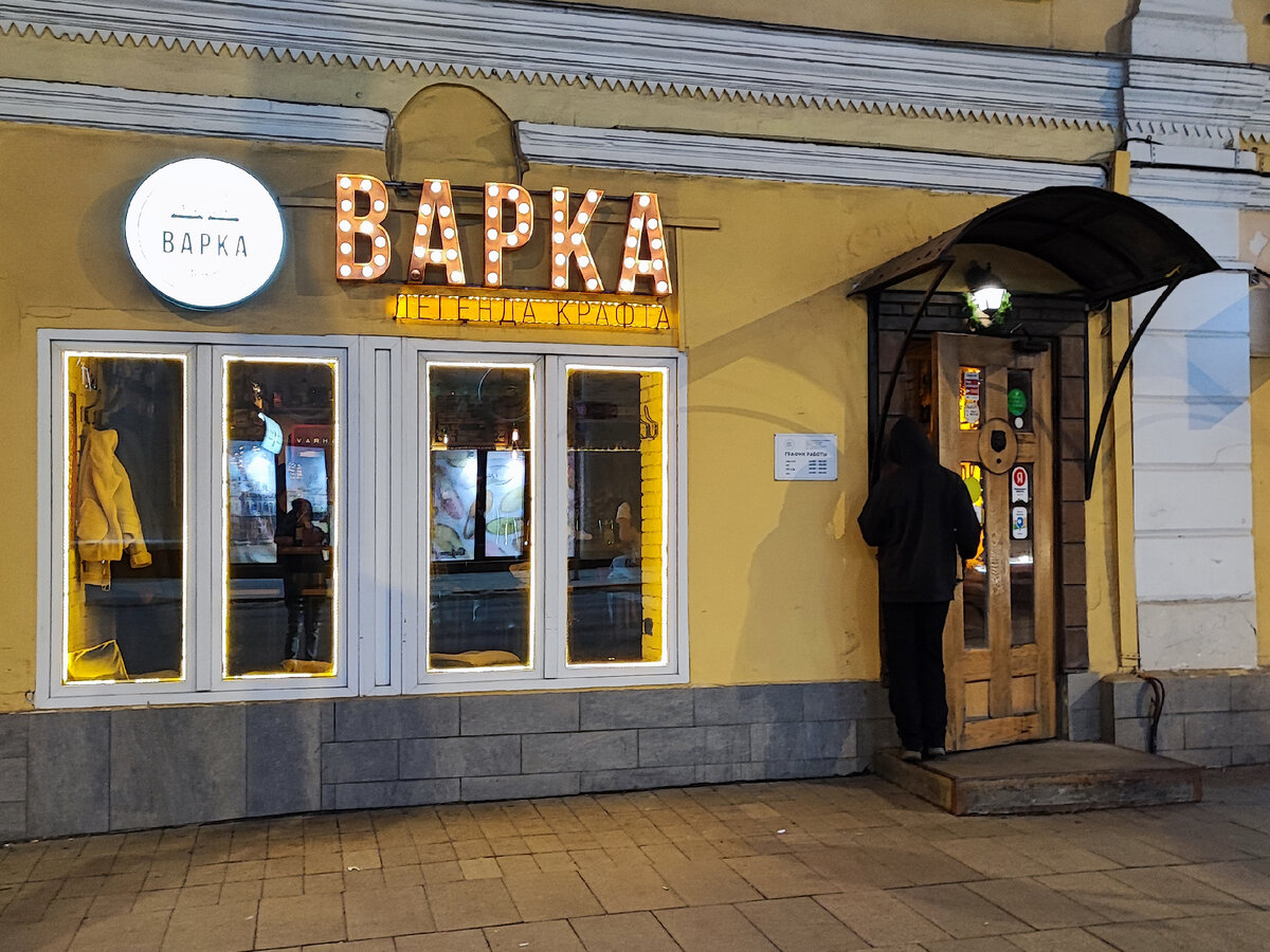 После «Маркса» навалила ностальгия по временам, когда пиво от «Бакунина» ещё пили с интересом, названия F*cking perfect harvest и «Рука б*га» писали без звёздочек, Бегларян не съехал с ЧП в Ясенево, «Домика» ещё не было, ВТД считали крафтовым баром, а «Мохнатый шмель» в литровой стекляшке был топ за свои деньги. Короче, очутились мы в «Варке». Не в ньюриговской, и не на Цветном, а в той самой, в старой. Легенда крафта как-то совсем не вывозит своё громкое самопровозглашение, и при прочих равных я скорее на Таганке зашёл бы в тот же Method, но дабы нанести уж старожила на карту и проверить как обстоят дела на девятом году жизни, решили остаканиться. Народу внутри в пиковое время поменьше, чем у соседей, но всё ж какие-то студенты толкаются, в бирпонг наяривают. Тап-лист и по стилю, и по содержанию олдскульный. «Прачка» по 460 ₽ за 0,4 л — это проклято. Подлетевший бармен сходу предложил что-то от Bumble beer, я решил спасаться, убежав к холодильнику без ценников. Там оказалось не разд