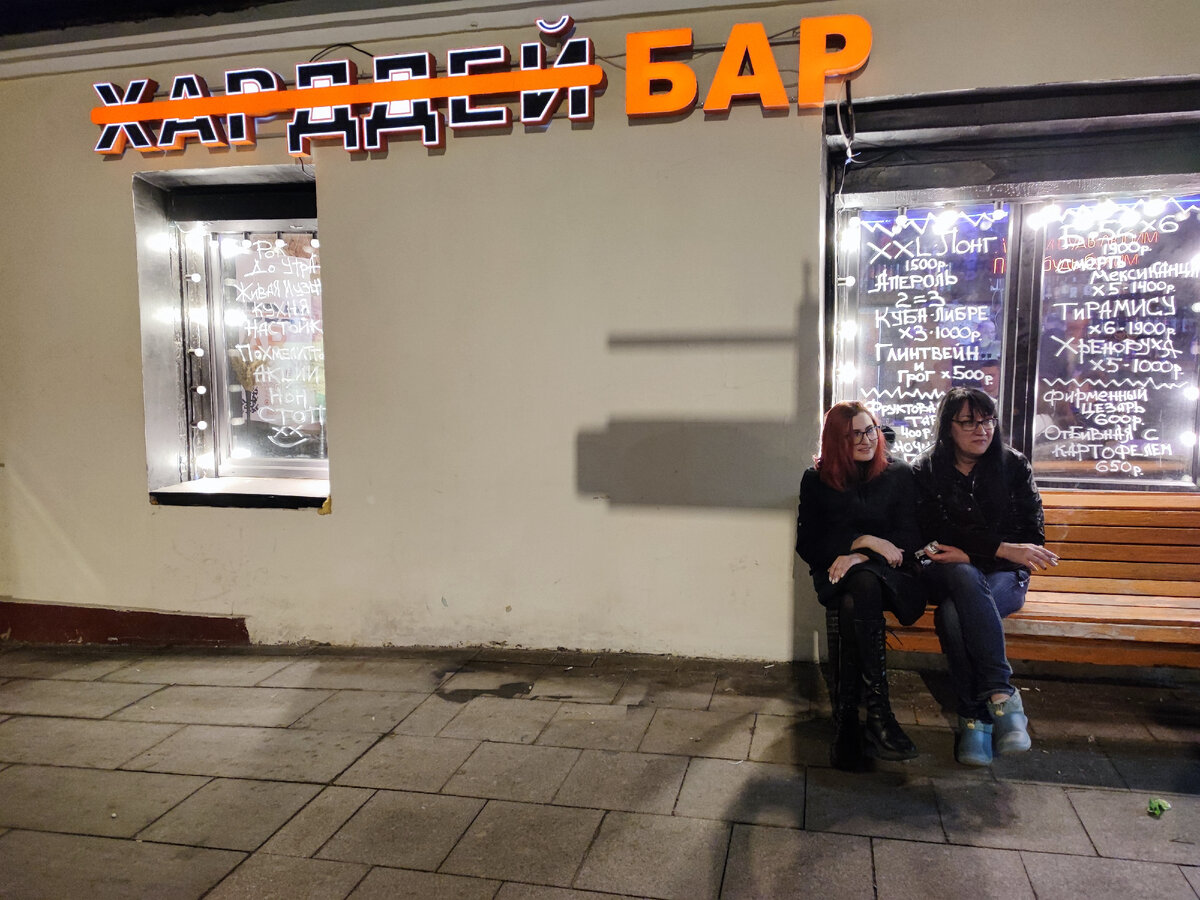 Зафиналили вечер в относительно молодом заведении Харддей бар. Раньше в этом помещении квартировался «Ваня нальёт», но потом что-то случилось, вместо скутера на входе поставили каферейсер и настали «трудные деньки». Адекватного обзора не будет, потому как попали мы сюда в самый неподходящий момент, какой только можно придумать — в вечер караоке. Я в целом нахожу это психотерапевтическое развлечение чем -то близким к пытке, даже когда люди поют довольно хорошо. А уж когда происходит истинное насилие над музыкой и чужими ушами, готов любую петицию подписать о запрете микрофонов в свободном доступе. Прикреплю одно видео, чтобы вы могли прочувствовать всё сами, но всё же настоятельно не рекомендую его включать. Со всем уважением к отваге поющего человека. В меню (по крайней мере раньше) фигурировал загадочный бургер с жареным раменом вместо булок. Звучит максимально странно, напишите, если его пробовали, как оно. Есть чуток разливного пива, кисляки какие-то в банках, «Царская» по 300 ₽ за