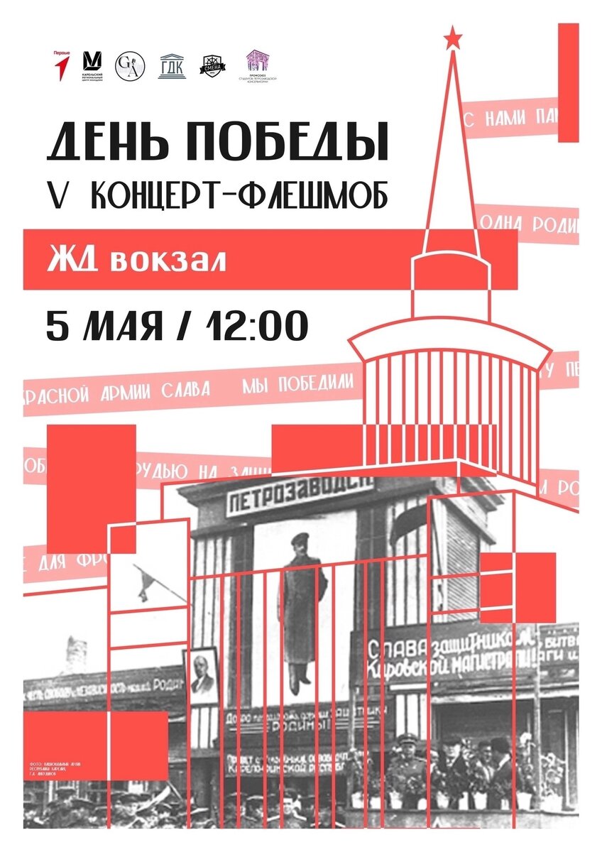 В мероприятии примут участие более 100 человек. Прозвучат известные и популярные песни. В Петрозаводске состоится V концерт-флешмоб к 9 мая, который пройдёт в здании железнодорожного вокзала (пл. Гагарина, 3) 5 мая в 12:00.