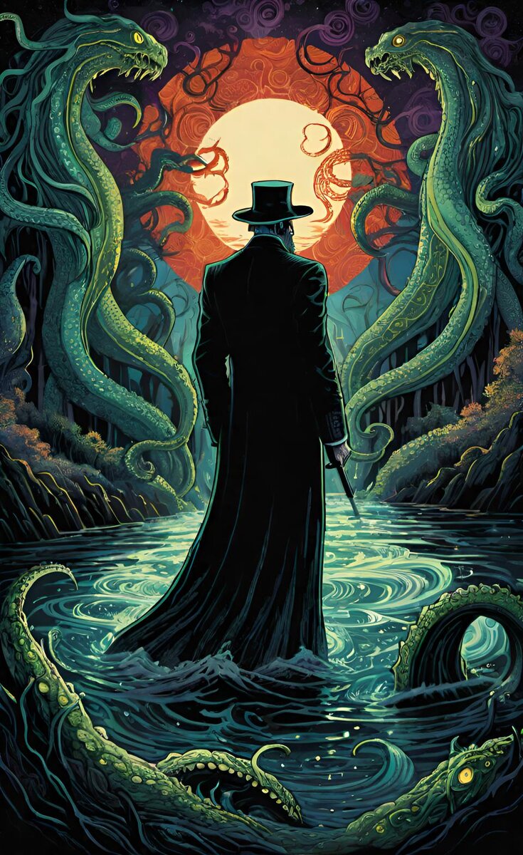 Я сначала ничего не понял, но когда из воды появилось нечто трудно поддающееся описанию, я с ужасом догадался, кто же этот Дхол! Жуткое червеобразное и бесцветное тело вынырнуло из реки, как безобразный раскачивающийся перископ! Чешуйчатые кольца передвигались то вверх, то вниз. Плоская голова без глаз торчала, слегка покачиваясь, Дхол дожирал хищной пастью, окруженной венцом извивающихся щупалец, свою приманку – отвратительных крысенышей. Мне стало нехорошо, я покачнулся. Мелисса подошла ко мне, поддержав за локоть.