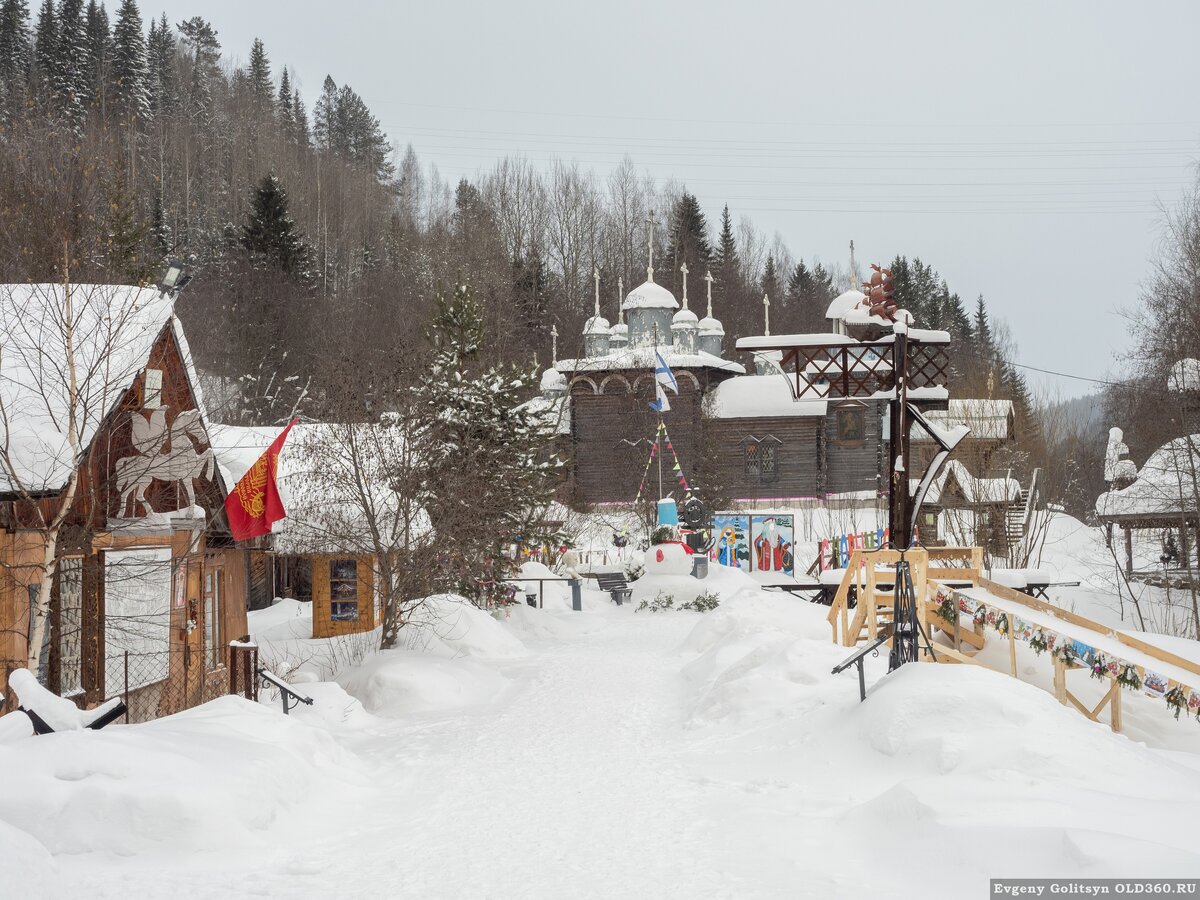 Продолжение зимней поездки. Предыдущая часть тут По пути заезжаем в парк истории реки Чусовой. С момента нашего последнего посещения тут тоже произошли изменения. Старые избы частично реконструируют заменяя дерево на новое. Смотрится плохо, но возможно их покрасят или состарят. А вот так эта церковь выглядела до реконструкции. Далее Пермь, ходим по центру, отдыхаем На следующий день утром едем в Кунгурскую пещеру. Зимой можно погреться в магазине сувениров Посещают пещеру в группе с экскурсоводом. Цены 1100-1300 в зависимости от дня. Пещеру называют ледяной, потому что около входа на стенах образуются ледяные кристалы Как мне показалось экскурсия больше рачитана на детей, "посмотрите на эти камни, они похожи на зверей". "А вот тут 100 лет назад ходили люди с факелами, а вот тут пещеру исследовал какой-то мужик" и т.д Зимой в пещере держится плюсовая температура. Из интересного в одном из гротов отключают свет, чтобы продемонстрировать абсолютную темноту. И вообще за руку никто не веде