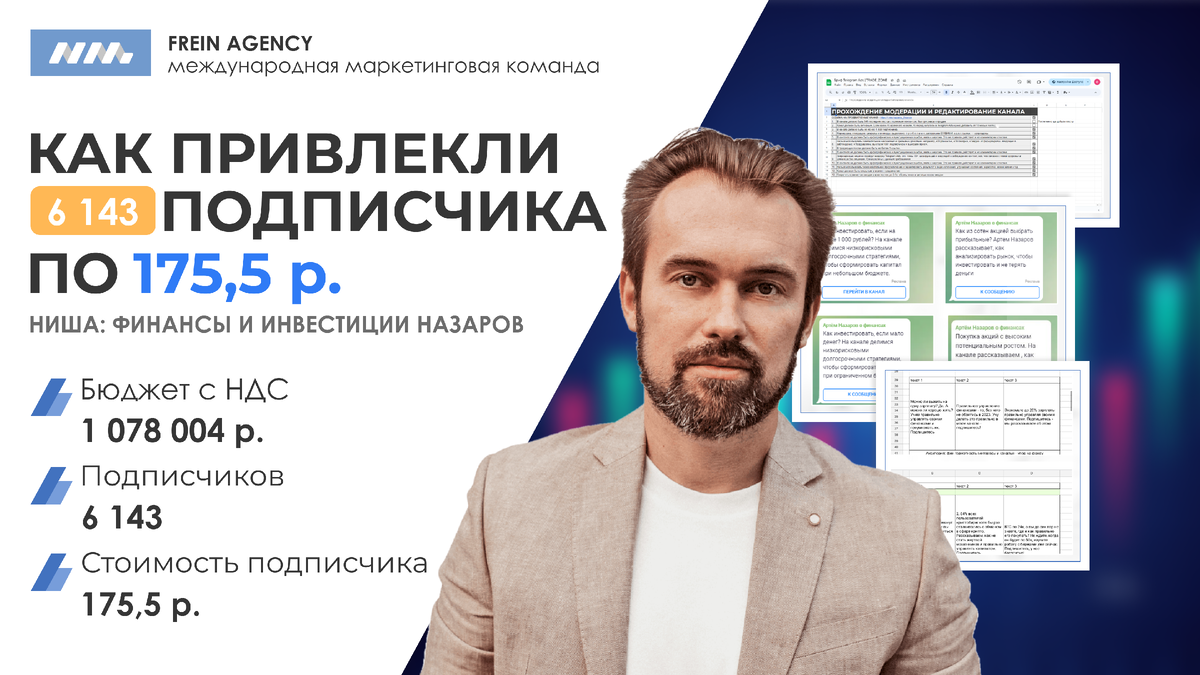 Работаем с клиентом с 28 марта 2023 года до сих пор. Артем Назаров доволен процессом: за весь период сотрудничества привлекли 6143 подписчика стоимость 175,5 рублей.