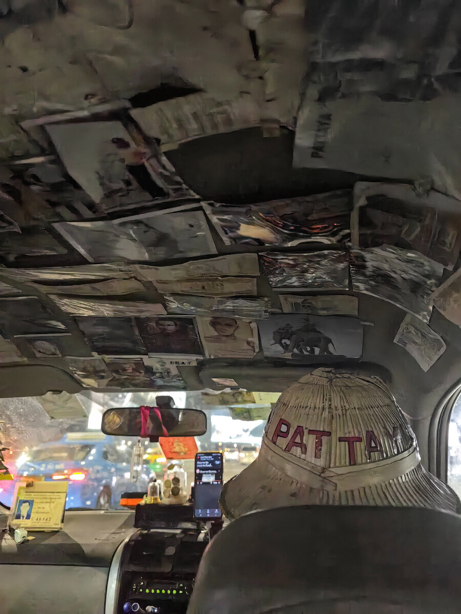 Настя бросилась ко мне на шею. Таксист попался безумный дед в бамбуковой шапке с надписью Паттайя и свастикой. Узнав, что мы из России, он сказал что русские нас не бомбили и начал что-то задвигать по-тайски. Вид такси еще был тот! Потолок был обклеен барышнями из семидесятых в стиле пин ап, дед был со слуховым аппаратом и всю дорогу разговаривал. Ехали мы со скоростью километров шестьдесят по автобану и, устав от напряжения, что нас все обгоняют, я заснул. Настя держала меня за руку и следила, когда мы заедем в город, чтобы остановить возле первого магазина севен-элеван. Пока я покупал в магазине продукты домой, дед пытался понять, как проехать к нашему отелю. У деда была явно паника, потому что он не мог справится с навигатором, на совершенном английском, которым я уже обладал, я сказал водителю, что дорогу покажу и на этом мы с трудом двинули. -Сколько вам лет? -спросил я, прощаясь с таксистом. -Семьдесят шесть! - ответил довольный дедуля. Бросив чемоданы в номере, мы сразу пошли