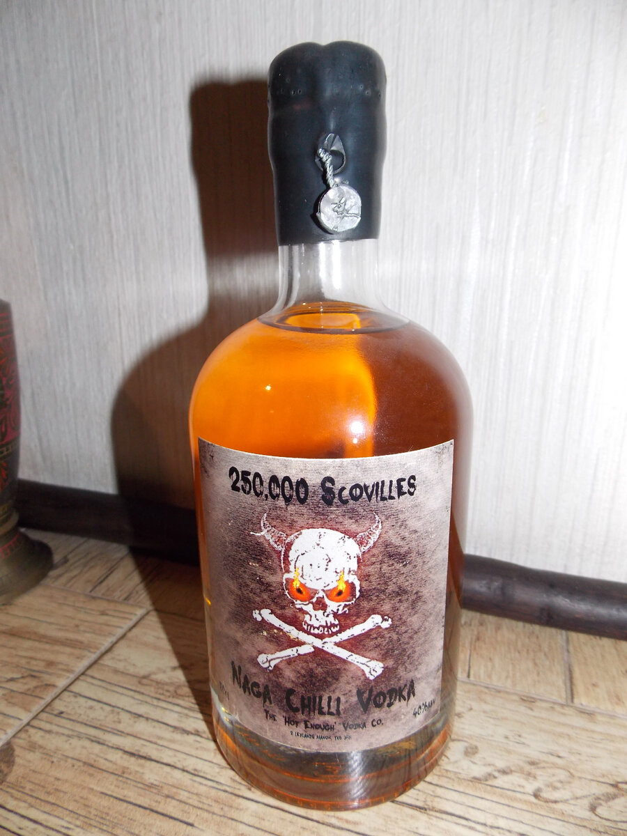 Уважаемые Господа, Друзья, Товарищи и Гости канала! Объем: 0, 5литра Крепость 40% Naga Chilli Vodka (дальше просто чили водка) производится в Шотландии компанией Master of Malt, содержание капсациина, вещества отвечающего за остроту (жгучесть перца) 250 000 по числу Сковилла, (В 1912 году доктор Уилбур Сковилл создал шкалу, для измерения остроты перца. Эта шкала указывает количество капсоциина - вещества, вызывающего ощущение остроты в перце. Чем выше содержание капсаицина тем острее перец) ниже таблица остроты перцев: К примеру красный соус «Табаско» всего лишь 2500-5000 по Сковиллу, а здесь надо же 250 тысяч, вот что пишет производитель про свою продукцию: «Делается эта штука примерно так же (просто), как и 100-тысячный сковилль – мы берем очень качественный английский пшеничный спирт и замачиваем в нем откровенно позорное количество перца Naga Jolokia Chillies на пару недель. Разница между 100 тысячами и этими 250 тысячами? Простой. Больше перца чили.» Еще от производителя: «Дегуст