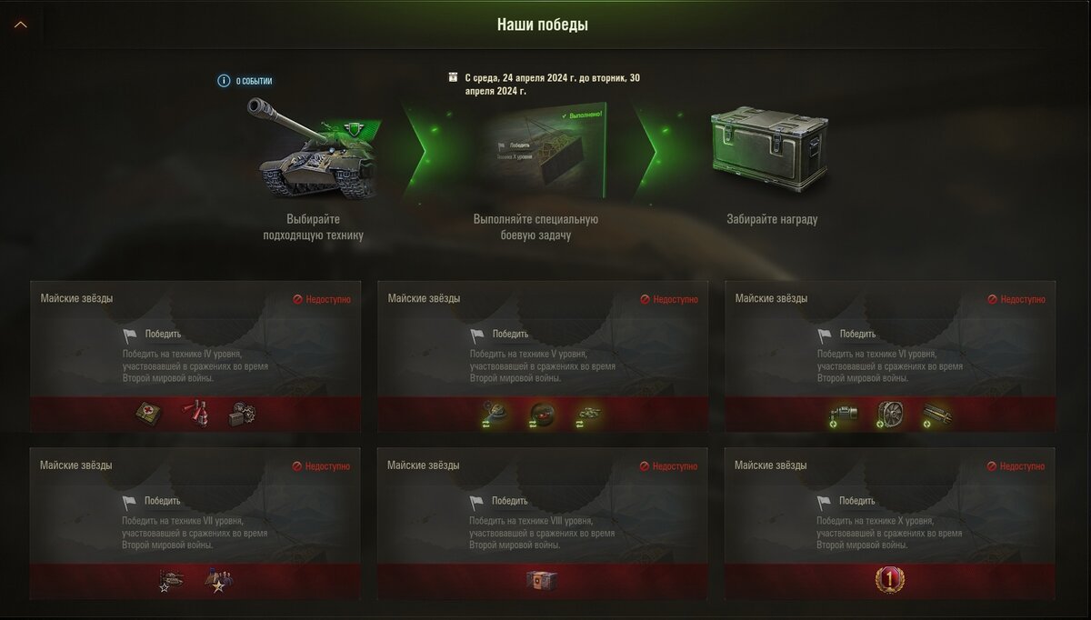 В честь Дня Победы нас будут ждать особые награды за первую победу на советских танках IV–X уровней.