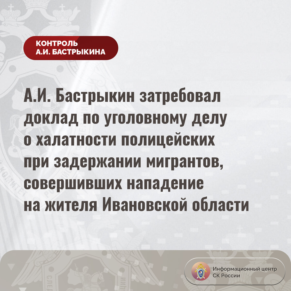 #СледственныйКомитет #СКРоссии #СКР #ИЦСКР #Информационныйцентр #АлександрБастрыкин #ПредседательСКР #КонтрольПредседателяСКР #КомментарийКонтроль #ИвановскаяОбласть