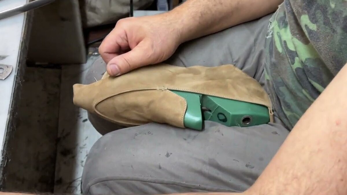 Сперва, сапожник наносит клей "наирит" между подкладкой и верхом обуви. По надобности устанавливает гранитоль или другой материал (на данной модели мы используем тот же дублерин, что бы пара была максимально мягкой но и не теряла форму.